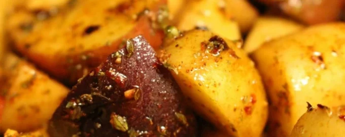 - Schalten Sie den Backofen auf den Grillmodus um und beobachten Sie ihn genau. Garen, bis sie knusprig sind. Es ist wichtig, nicht zu überkochen oder zu verbrennen. Das Gericht ein paar Minuten ruhen lassen, dann mit Salz und Pfeffer abschmecken. Das Gemüse mit einer Schaumkelle auf eine Servierplatte oder direkt auf Teller geben. Kartoffeln im Ofen – fertig.