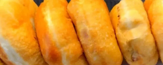 - Den Teig kneten und in 12-14 Stücke teilen. Jedes Stück ausrollen, die Füllung einfüllen und eine Pastete formen. Alle Patties in Pflanzenöl braten, bis sie auf beiden Seiten goldbraun sind.