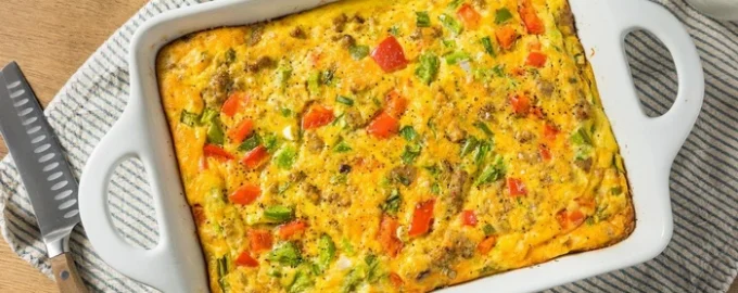 Für die Zubereitung benötigen Sie Wurst oder Schinken, Eier, Mehl, Backpulver, Butter, Paprika, grüne Zwiebeln, Gewürze und eine Backform.