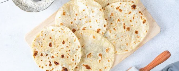 - In einer gut erhitzten, trockenen Pfanne ca. 1 Minute auf jeder Seite braten, bis sie Blasen werfen. Sie blähen sich schön mit Luft auf.