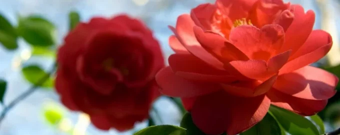 Kamelien werden in der Ruhezeit gepflanzt, damit sich das Wurzelsystem vor der Frühjahrsblüte stärken kann. Es handelt sich um einen immergrünen Strauch mit glänzendem Laub und großen Blüten, die vom Winter bis zum Frühjahr erscheinen. Er bevorzugt halbschattige, saure und feuchte Böden. Nach der Blüte muss er leicht zurückgeschnitten werden.