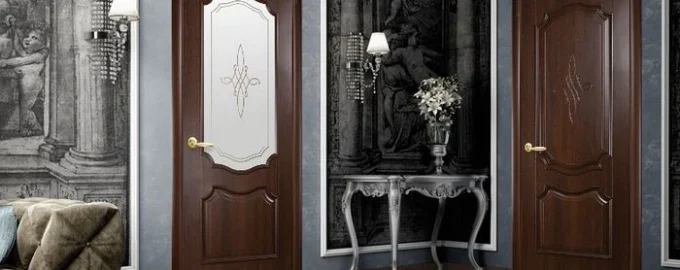 - Klassischer Stil. Der klassische Stil zeichnet sich durch Eleganz und Geradlinigkeit aus. Hier ist es möglich, Türen mit Furnier zu wählen, das natürliches Holz imitiert, mit dekorativen Paneelen oder Fräsungen. Warme Farben – Berg, Eiche, Wenge – unterstützen die Salzigkeit des Interieurs.