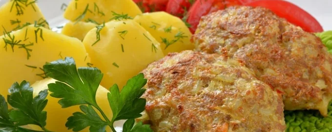 Koteletts aus Hackfleisch mit Gemüse und Gewürzen im Backofen, werden zart, saftig, da die Hälfte des Hackfleischs aus Gemüse besteht, und auch sie fallen sehr üppig aus.