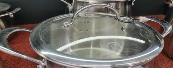 Es ist eine gute Idee, Papiertücher zwischen die Töpfe zu legen, aber es ist wichtig, daran zu denken, dass die Deckel des größten Topfes in diesem Design obenauf liegen sollten, um den gesamten Inhalt vor Staub zu schützen. Noch ein letzter Hinweis: Bewahren Sie die Deckel der Töpfe niemals im Schrank auf, wenn sie in einem Regal übereinander stehen.